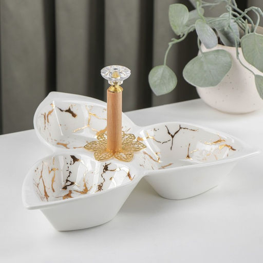 Менажница «Марбл», 160 мл, 3 ячейки, 25.3×23×4.5 см, керамика, белая