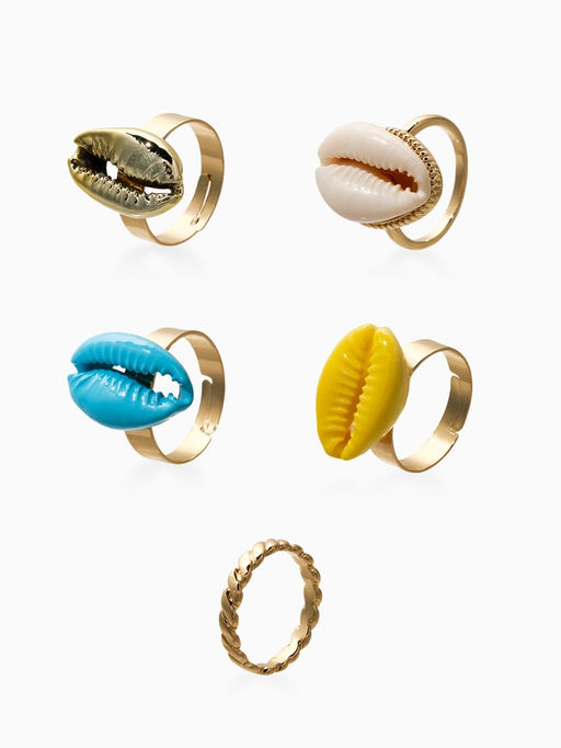 • Набор колец 5 шт "Новый стиль" ракушки, размер МИКС, цветные в золоте