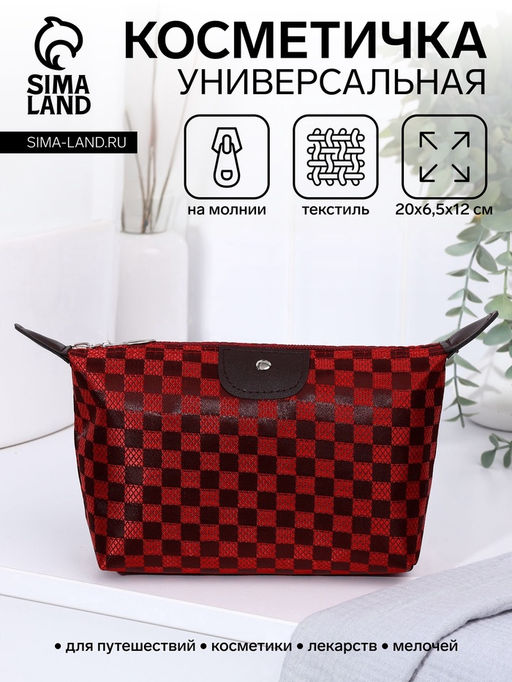 • Цена за 2 шт. Косметичка простая на молнии, в клетку, средний размер, бордовая