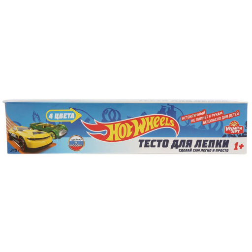 0_Тесто для лепки «Hot Wheels» ТМ «МультиАрт» – отличный вариант для развития творческих способностей ребёнка. В набор входит 4 баночки с тестом разного цвета: синий, жёлтый, красный, зелёный. Используя тесто из набора, малыш может увлекательно провести время, самостоятельно или при помощи родителей вылепливая разнообразные поделки.