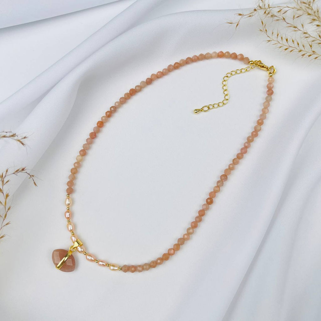 • Чокер из Лунного камня и Жемчуга с подвеской