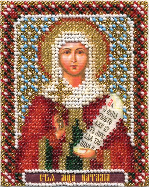 Описание В наборы для вышивания входят: ткань для вышивания с нанесенным рисунком, тонкая игла для вышивания бисером Gamma, бисер Чехия, хлопчатобумажные нитки мулине Gamma, текст молитвы, подробная инструкция. Лик и руки Святого не зашиваются. Святая мученица Наталия помогает в сохранении семейного очага, ей молятся о добрых отношениях в семье. Для оформления дизайна рекомендуем вам использовать рамку Gamma 9.5х12 см. Перед приобретением рамки, обязательно измерьте готовую работу