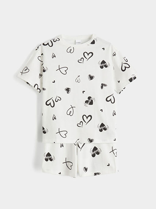 Kalp Desenli K?z ?ocuk ?ortlu Pijama Tak?m?