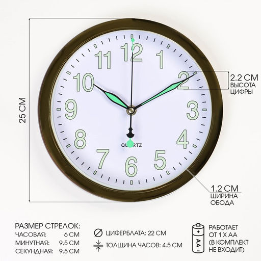 Форма: Круглая. Ширина, см: 25. Высота, см: 25. Тип механизма: Кварцевый.