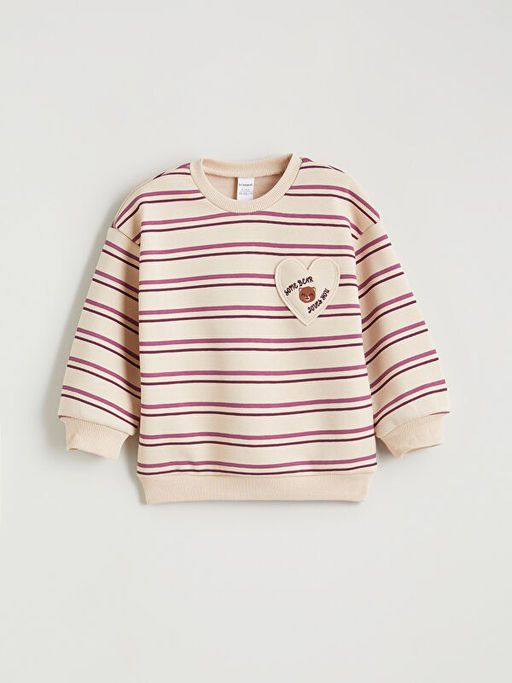 • Bisiklet Yaka ?izgili K?z ?ocuk Sweatshirt