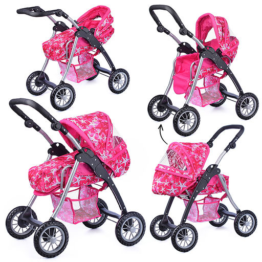 Коляска зима-лето для кукол, металлическая, с люлькой-переноской, с корзиной, цвет вишенка
