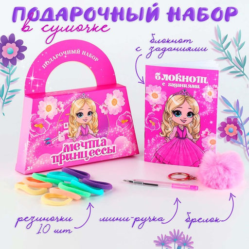 • Подарочный набор, в сумке: блокнот, резиночки, брелок, ручка «Мечта принцессы»