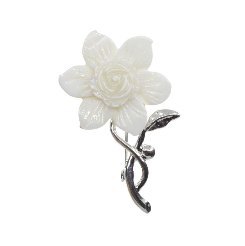 • Брошь "Нарцисс" со вставкой из перламутра и ювелирного сплава