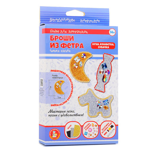 Набор для творчества. Брошь-бант из фетра "Луна, конфетка, собачка"