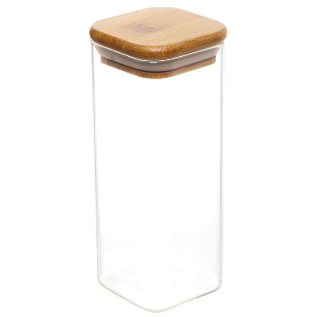 Цена за 2 шт. Банка для продуктов стеклянная 400мл "Хай-Тек" с бамбуковой крышкой, квадратная 6*15см