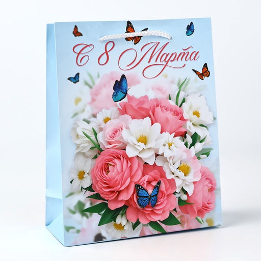 • Цена за 3 шт. Пакет подарочный ламинированный С 8 марта, MS 18?23?8 см