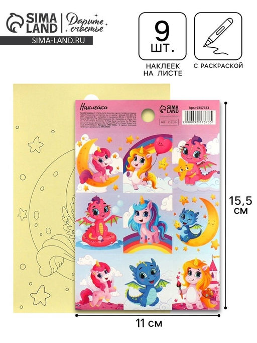Цена за 10 шт. Наклейки детские «Волшебные единороги», раскраска на обороте, 11×15.5 см