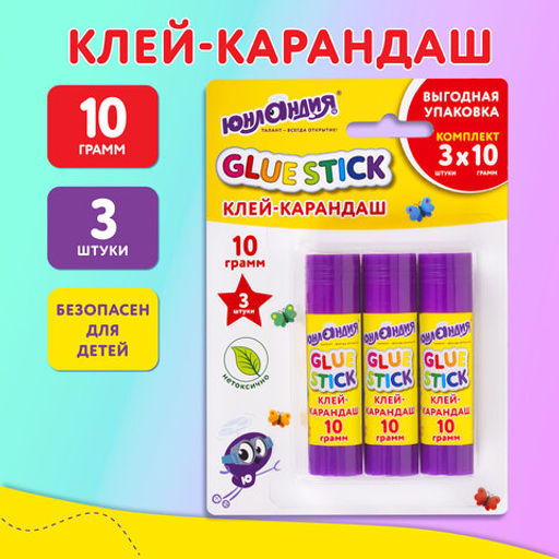 • Клей-карандаш 10 г, выгодная упаковка, 3 шт. на блистере, ЮНЛАНДИЯ
