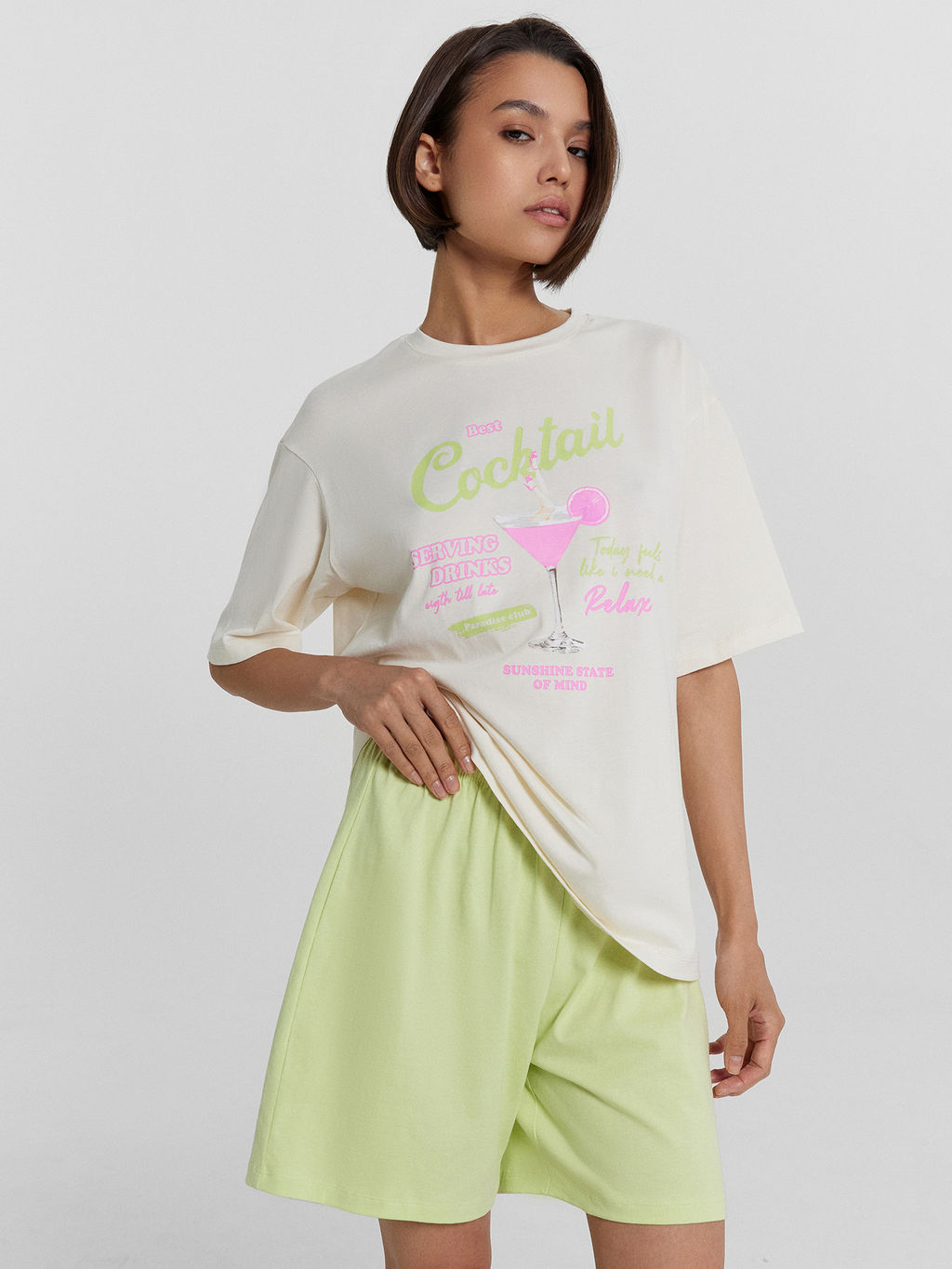 Женская пижама Mark Formelle станет идеальным дополнением вашего домашнего гардероба. Свободная футболка с круглой горловиной и короткими рукавами со спущенной линией плеча обеспечивает максимальный комфорт и свободу движений. Шорты свободного кроя с эластичным поясом идеально сидят на талии, не стесняя движений и обеспечивая удобство на протяжении всего дня. Изделие выполнено из нежной кулирки - мягкого и приятного к телу материала, который отличается дышащими свойствами и гипоаллергенностью. Подарите себе или своим близким эту чудесную пижаму и наслаждайтесь уютными домашними вечерами.­