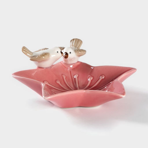 • Блюдо сервировочное Голубки на цветочке, 14?13.5?4 см, керамика, розовое