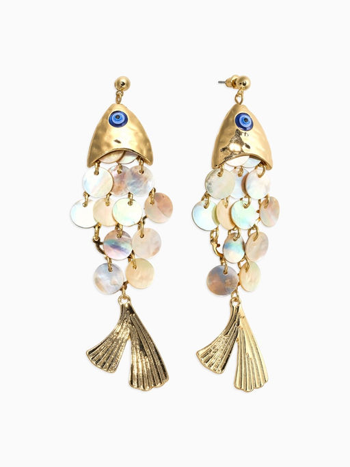 • Серьги «Морской мир» рыба, серые в золоте