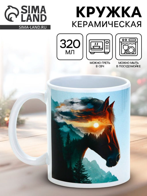 Новогодняя керамическая кружка 320 млСоздайте праздничное настроение с каждой чашкой чая или кофе! Эта керамическая кружка объемом 320 мл с новогодним дизайном станет вашим верным спутником в зимние вечера. Яркое и долговечное изображение будет радовать вас весь праздничный сезон.Идеальный размер для любимых горячих напитков — достаточно вместительная, чтобы насладиться вкусом, и удобная для повседневного использования. Качественная керамика отлично сохраняет тепло, даря комфорт в холодные дни.Прекрасный подарок коллегам, друзьям или себе для создания новогодней атмосферы. Начните утро с праздничной нотки и заряжайтесь зимним настроением весь день! Набор: Нет. Объём, мл: 320. Тематика: Новогодняя. Тематика: Животный мир. Рисунок: Да. Символ года: Символ года 2026 (Лошадь). Тематика праздника: Новый год. Дополнительный аксессуар: Без аксессуаров. Индивидуальная упаковка: Нет. Можно мыть в посудомоечной машине: Да. Можно использовать в СВЧ-печи: Да. Текстура: Гладкая. Особенности: Сублимация. Матовая поверхность: Нет. Бесплатная доставка: Да.