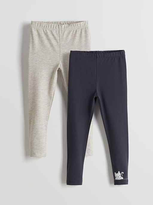 Bisiklet Yaka Bask?l? K?z ?ocuk Tayt 2li
