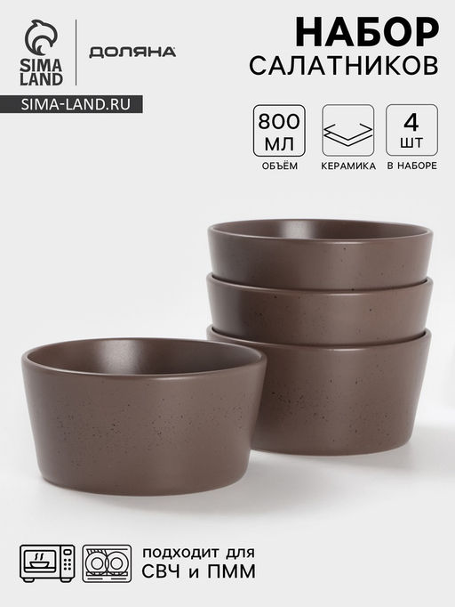 • Набор салатников Доляна «Гранит», 4 шт., 800 мл, 14.5×7 см, керамика, коричневый
