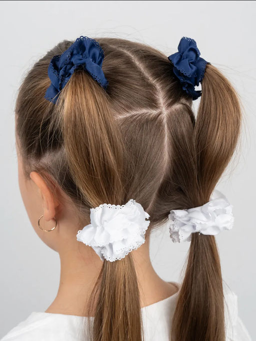 Белые резинки для волос 2шт - это стильный и практичный аксессуар для создания элегантных причесок. Изготовленные из качественного текстиля и кружева, банты нежно обрамляют волосы, добавляя образу женственности и утонченности. Резинка обеспечивает надежную фиксацию, не повреждая волосы. Классический белый цвет бантов легко сочетается с любой одеждой и подходит для любого случая.