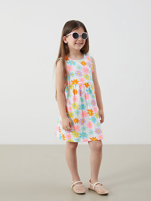 Bisiklet Yaka Bask?l? K?z ?ocuk Penye Elbise