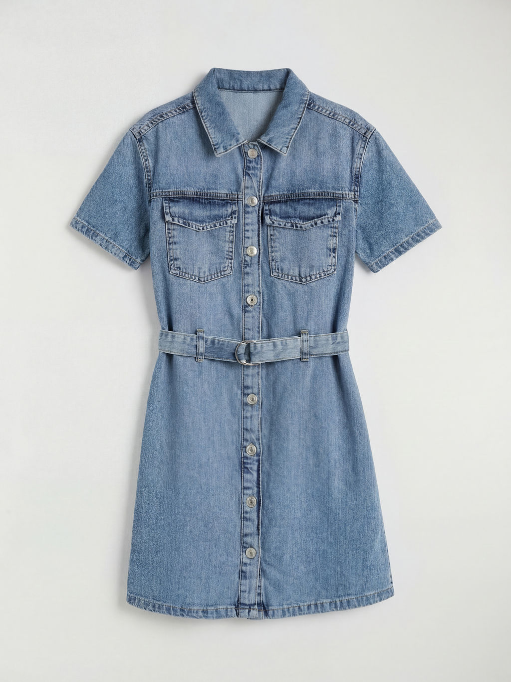G?mlek Yaka K?sa Kollu K?z ?ocuk Jean Elbise