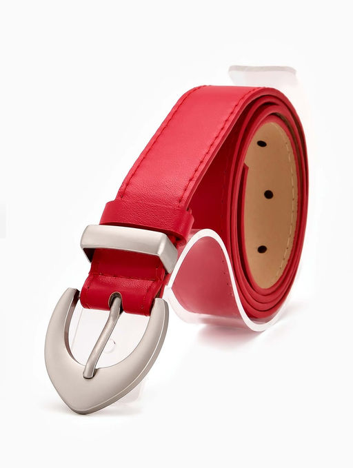 Ремень женский, 110×3 см, пряжка металл матовая, серебристая, красный
