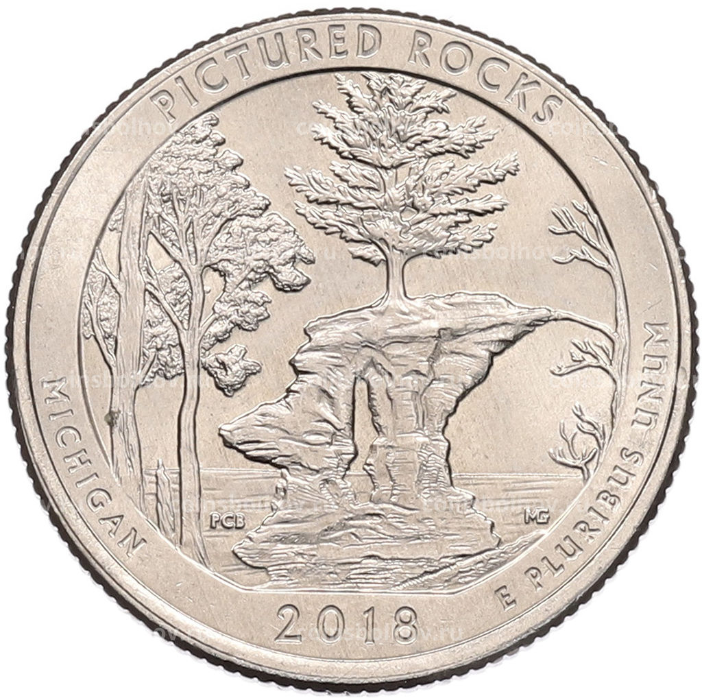 • Монета 1/4 доллара (25 центов) 2018 года P США Национальные парки  №41 Национальное побережье живописных камней