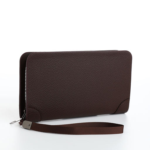 • Портмоне мужское на молнии, отдел для карт, монет, коричневое