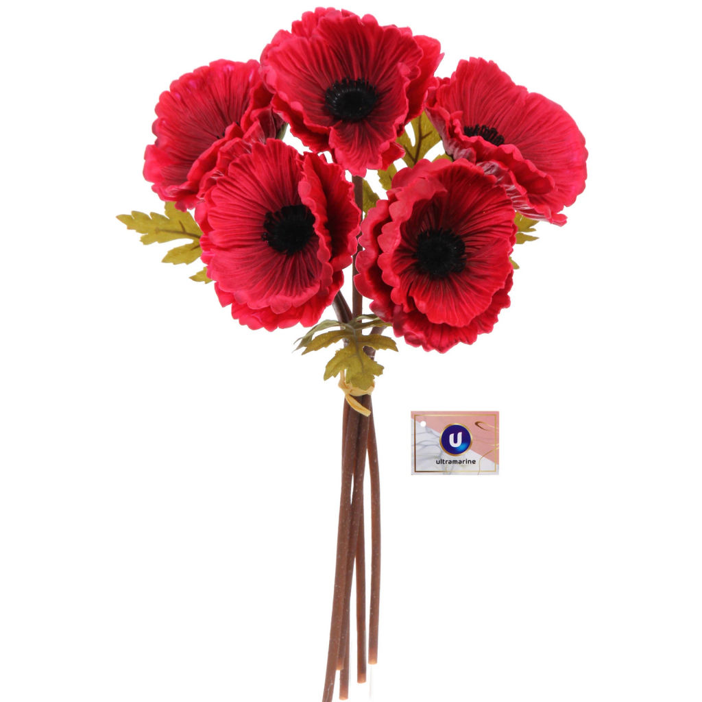 • Цветы искусственные "Natur" 30см Маки 5шт бордовые