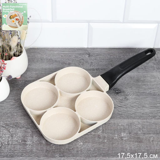 Эта сковорода для завтрака размером 17,5х17,5 см - идеальный выбор для тех, кто ценит удобство и функциональность на кухне. С уникальным дизайном, позволяющим готовить два яйца отдельно и одно общее блюдо, она станет незаменимым помощником в приготовлении вкусных завтраков.