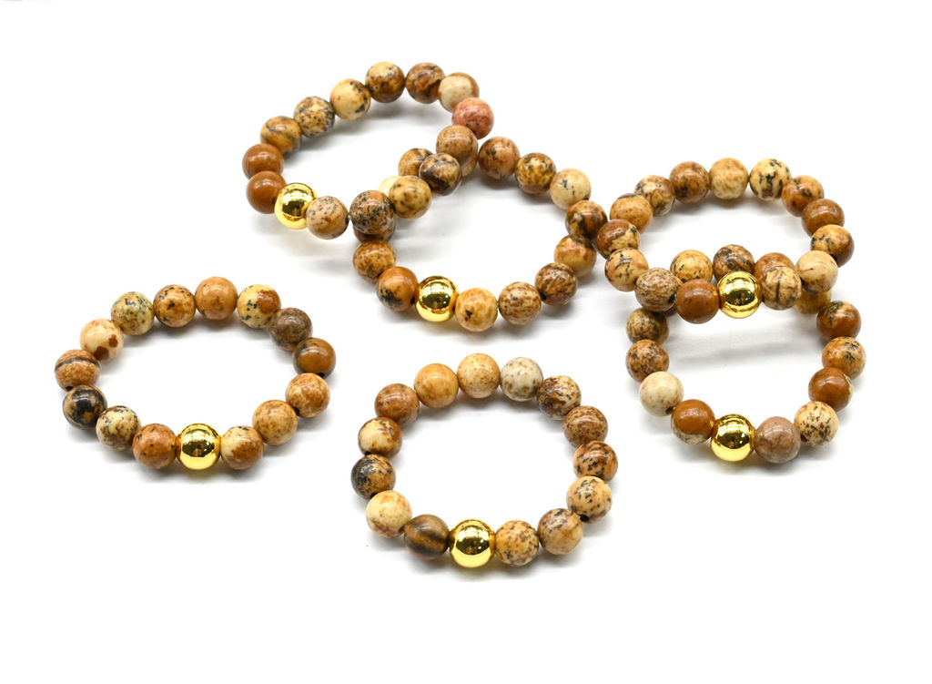 • Кольцо на резинке из яшмы бежевой, шарик 5мм