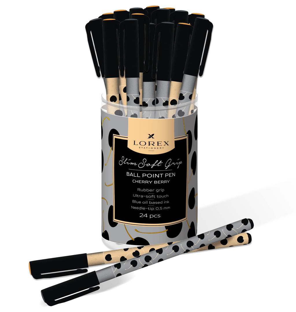 Цена за 2 шт. Ручка шариковая на масляной основе LOREX CHERRY BERRY Slim Soft Grip синяя 0,5 мм, ассорти...