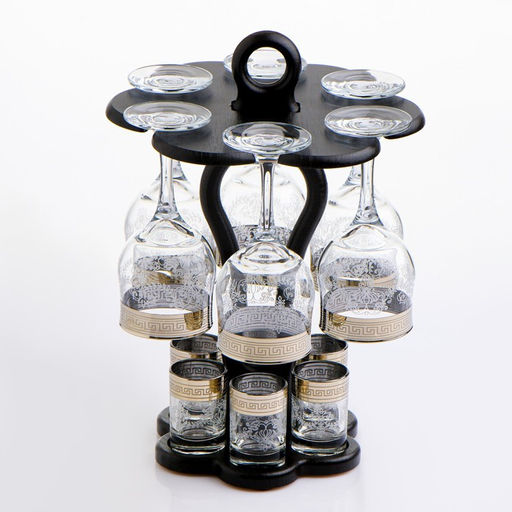 • Мини-бар «Изящный», 12 предметов, бокал 240 мл, стопка 50 мл, гравировка, стекло, прозрачный, золотистый