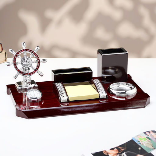 Порой рабочий стол настолько загружен, что негде расписаться или составить документ от руки. А на большинство людей беспорядок действует негативно, снижает концентрацию и продуктивность.Компактный настольный набор поможет избежать хаоса на рабочем месте. Храните в нём канцелярские принадлежности или другие мелочи, чтобы правильно организовать пространство. К тому же изделие имеет минималистичный дизайн и выполнено под дерево, поэтому оно украсит собой любое место как декоративный элемент.С помощью такого аксессуара можно поздравить сотрудников, руководство, деловых партнёров, также он подойдёт в качестве подарка учителям и преподавателям. Набор: Да. В наборе, шт.: 6. Тематика праздника: 23 Февраля. С часами: Да. Бесплатная доставка: Да.
