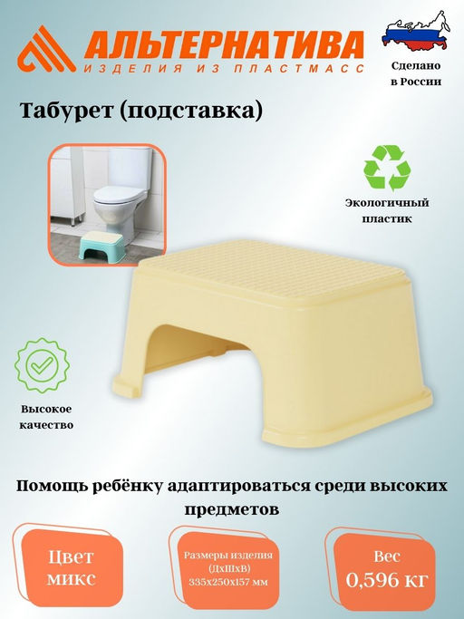 Чтобы помочь ребенку адаптироваться среди высоких предметов, стоит приобрести подставку. Прочная и удобная она позволит малышу самостоятельно помыть руки в раковине, достать до унитаза, взять книжку с полки и включить свет. Универсальность данного изделия заключается в том, что его можно использовать и в качестве табурета для сиденья. Небольшой вес подставки позволит ребенку самому перенести ее в нужное место. Рельефный рисунок на поверхности и специальные вставки на ножках предотвращают соскальзывание ребенка. Изделие изготавливается из прочного и безопасного пластика.­