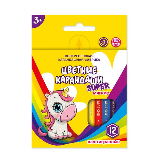 Описание Набор цветных карандашей Единорог на радуге, 12 штук, шестигранные, диаметр 7.0 мм., длина 88 мм., отделка корпуса в цвет стержня, заточенные, в картонной коробке с европодвесом. На лицевой стороне картинки изображен срез профиля тела карандаша , относящийся к данному набору карандашей. Предназначен для графических работ любой сложности. Изготовлены из сырья и материалов природного происхождения и качественной химически необработанной древесины липы, выращенной в экологически чистых районах России. Проклейка стержня осуществлена по специальной технологииОбязательныйОбязательный