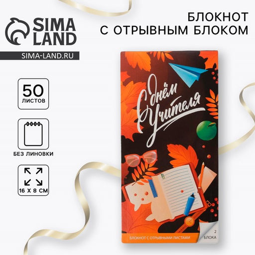 • Цена за 2 шт. Блокнот, 50 л., отрывной блок, мягкая обложка, 8×15.7 см «С Днём Учителя»