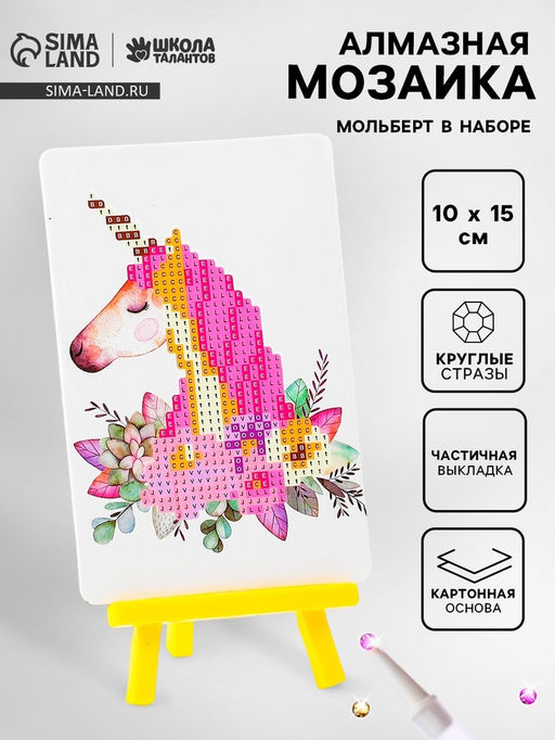 Алмазная вышивка «Единорог с цветами», 10×15 см, с подставкой, с частичным заполнением