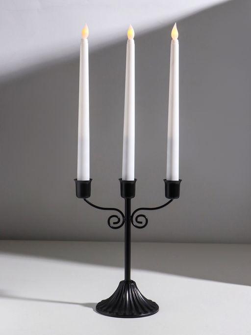 Подсвечник на 3 свечи «Классика с завитками», металл, d=2.5 см, чёрный, 18×10×21 см