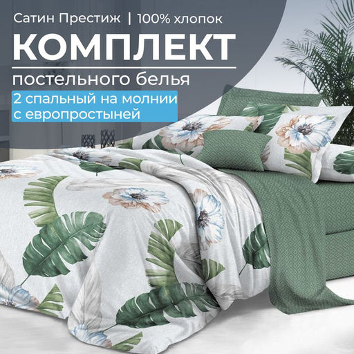 2 спальное постельное белье из сатина "Престиж" плотностью ткани 115 г/м2, несомненно станет достойным дополнением в вашей комнате так как имеет много достоинств: элегантный и благородный дизайн, высокое качество абсолютно натуральной ткани из 100% хлопка, отличное качество пошива, оно плотное, износостойкое, гипоаллергенное, очень приятное по тактильным ощущениям. В комплекте: пододеяльник 180*215 см, оснащенный удобной потайной застежкой на молнии, простыня 240*220 см, две наволочки 70*70 см на молнии. Комплекты постельного белья из сатина «Престиж» - это выбор людей, которые ценят комфорт и выбирают качество. -- Характеристики -- Вес: 2000 кг Размерность комплекта: 2-х спальный Комплектность: 1 пододеяльник, 1 простыня, 2 наволочки Количество предметов в комплекте: 4 Размерность пододеяльника: 2-х спальный Размер пододеяльника: 180x215 Кол-во пододеяльников в комплекте: 1 Замок пододеяльника: На молнии Размерность простыни: Евро Размер простыни: 240x220 Размер наволочки: 70x70 Замок наволочки: На молнии Кол-во наволочек в комплекте: 2 Ткань: Сатин "Престиж" Состав: 100 % хлопок Плотность: 115 г/м2 Плотность плетения: Высокая Режим стирки: При 40 градусах Цвет: Зеленый Расцветка: Фаина Вид принта: Цветы Целевая аудитория: Взрослая