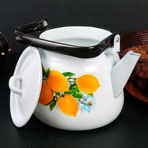 • Чайник для плиты 3,5 л сфер. Лимоны, белый с петлёй С2716*97