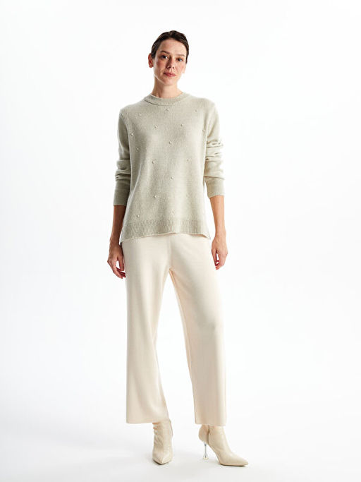 Beli Lastikli D?z Geni? Pa?a Kad?n Triko Pantolon