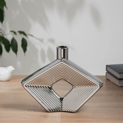 • Ваза для цветов «Брэм», ромб, 23.5×20 см, керамика, серебристая