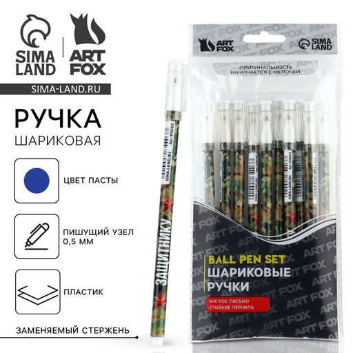 Цена за 10 шт. Ручка шариковая пластик шариковая, синяя паста, 0.5 мм «Защитнику»