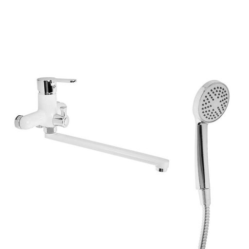 Гарантийный срок, мес.: 12. Длина излива, мм: 300. Тип управления: Рычажный. Тип излива: Длинный. С душевым набором: Да. С тропическим душем: Нет. Вид установки: Настенный. Интерьерный: Нет. Диаметр картриджа: 35. Бесплатная доставка: Да.
