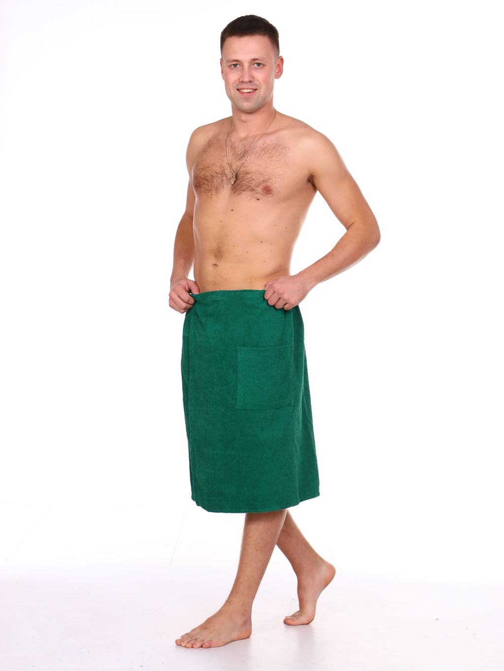 Килт мужской махровый для бани и сауны очень удобен в использовании: он легко надевается и быстро застегивается на липучку. Лёгкий килт изготовлен из 100% хлопка, что позволяет телу дышать, материал мягкий и приятный. Плотность махрового полотна 300 г/кв.м. Банное полотенце на липучке отлично впитывает влагу и быстро высыхает. Килт мужской махровый банный прекрасно заменяет огромные неудобные полотенца, которые постоянно спадают. Универсальный размер килта мужского махрового 64 см на 142 см подойдет на любой рост и фигуру до 54-56 размера. Имеется удобный вместительный карман. Полотенце махровое мужское на липучке удобно брать с собой в баню, сауну, бассейн, на отдых на море или речку. Так же килт банный мужской отлично подойдет для домашнего использования. Килт мужской банный махровый будет полезным и практичным подарком на новый год, день рождения, 14 февраля, 23 февраля день защитника отечества и на любой другой праздник папе, дедушке, брату, другу. -- Характеристики -- Вес: 460 кг Ткань: Махровая Состав: 100 % хлопок Отделка: Декоративная лента Режим стирки: При 40 градусах Цвет: Зеленый Расцветка: Изумрудный Вид принта: Однотонный Целевая аудитория: Взрослая