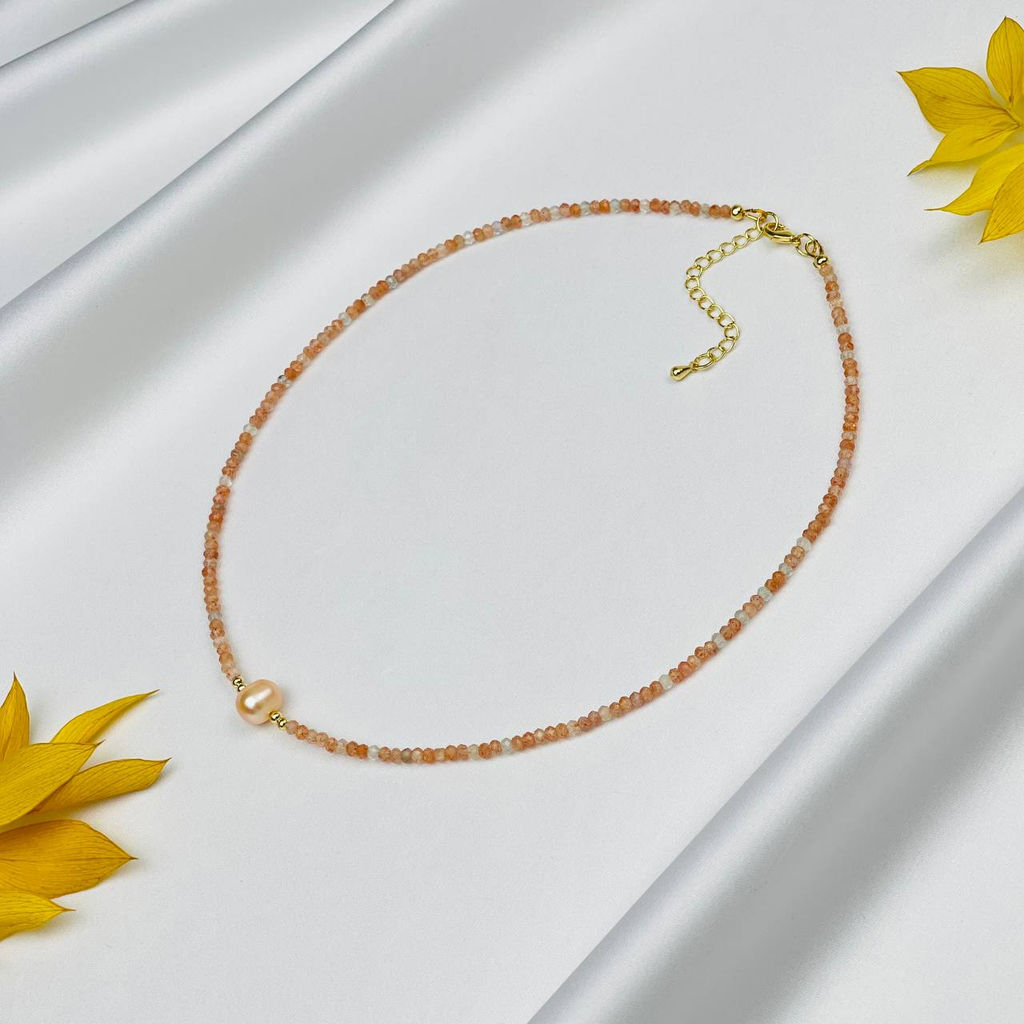 • Чокер из Солнечного камня и Жемчуга 38 см +