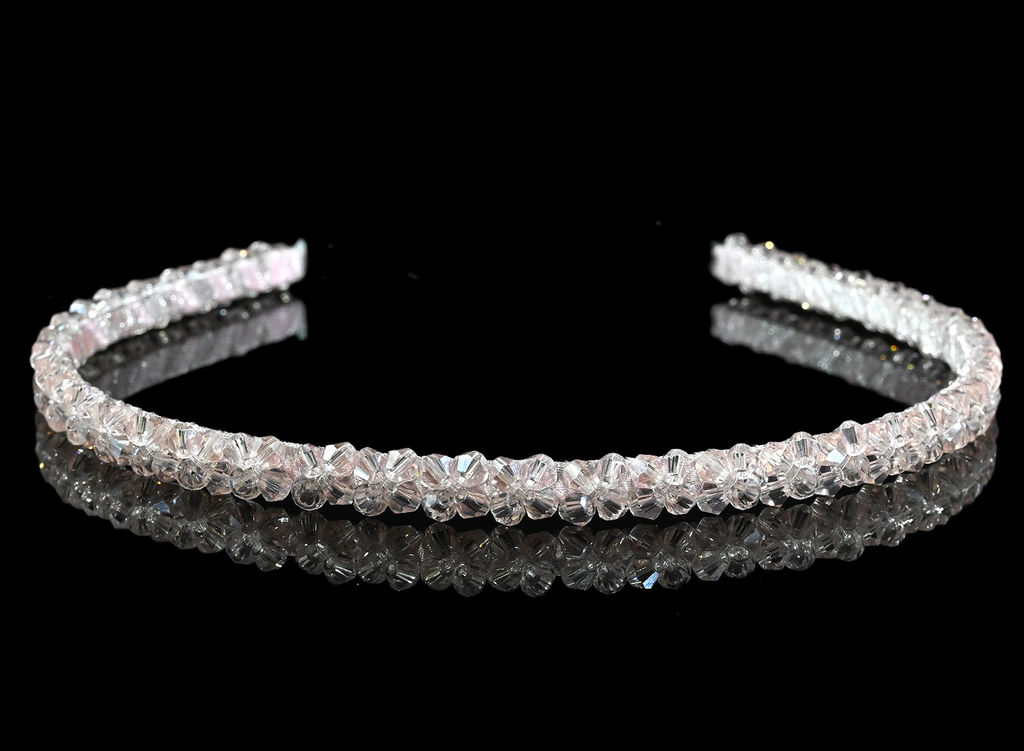 Тонкий ободок для волос украшенный цирконами в ювелирной огранке.