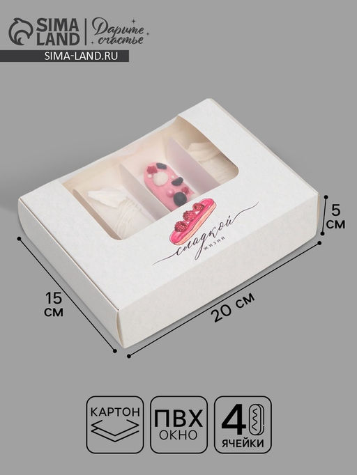 Цена за 5 шт. Коробка для эклеров, кондитерская упаковка, 4 вкладыша, «Сладкая жизнь», 20×15×5 см
